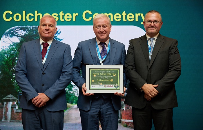 The Memorial Awareness Board (MAB) has been promoting and organising the Cemetery of the Year Awards for nearly 20 years. Colchester Cemetery won the 2024/25 (Best New Entry) prize in the Large Burial Grounds above 10,000 Graves Cemetery category of the National Competition, and received the award at the Institute of Cemetery and Crematorium Management Learning Convention and Exhibition on 24 September 2024.
