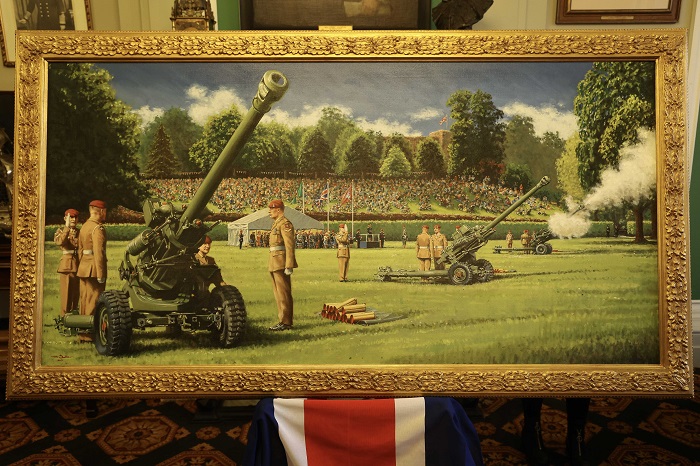 The decision to commission the painting was made by Colchester City Council and funded through the civic budget in 2022, recognising the significance of the Platinum Jubilee Gun Salute. Taking place on 2 June 2022, the 42-gun salute by Colchester-based 7th Parachute Regiment Royal Horse Artillery resonated through the city centre, marking a once-in-a-lifetime event and serving as a powerful symbol of community and national pride.