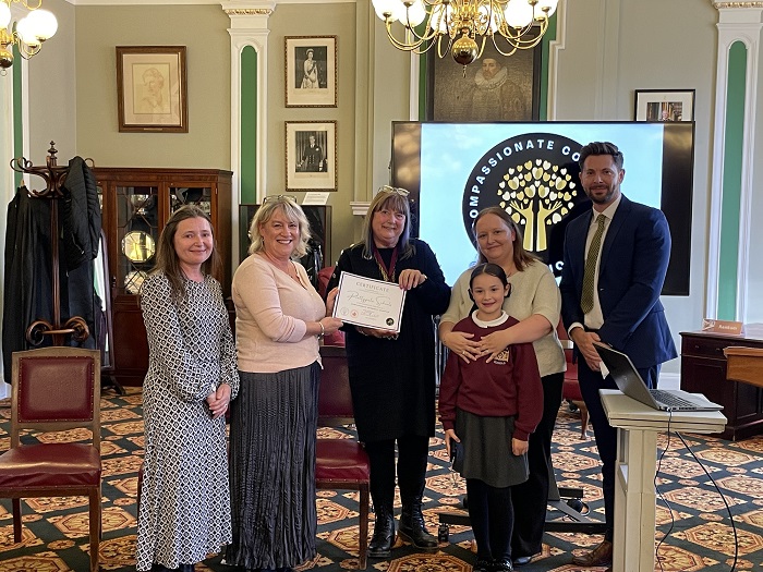 The Mayor of Colchester, Councillor Lesley Scott-Boutell, presided over the first-ever presentation of the Compassionate Community Champions awards at the Town Hall on 3 October 2024. Gemma Boud nominated Prettygate School for the Compassionate Place Award in recognition of the love and support her family received during their difficult time.