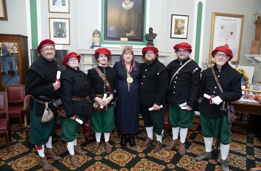 Pictured above: The Mayor, flanked by members of Colchester Town Watch.