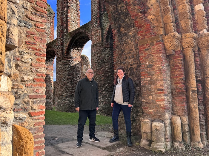 Pictured above: Colchester Arts Centre’s Anthony Roberts and Cllr Natalie Sommers at St Botolph’s Priory, where Open-Air Stand-Up Comedy will take place