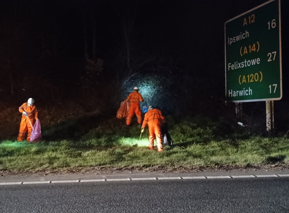 Taking advantage of overnight road closures on the A12, the Neighbourhood Services team received permission from Essex Highways to conduct overnight litter picks on 22, 23, 29, and 30 March. This monumental effort, involving thirty-four operatives over the four nights, cleared more than six and a half tonnes of waste from the roadside. The areas covered included the stretch of A12 between Junctions 26 and 29 (towards Ipswich) and between Junctions 29 and 27 (towards Chelmsford). While some areas could not be accessed due to staff safety concerns, additional A12 litter picks are planned in the future.