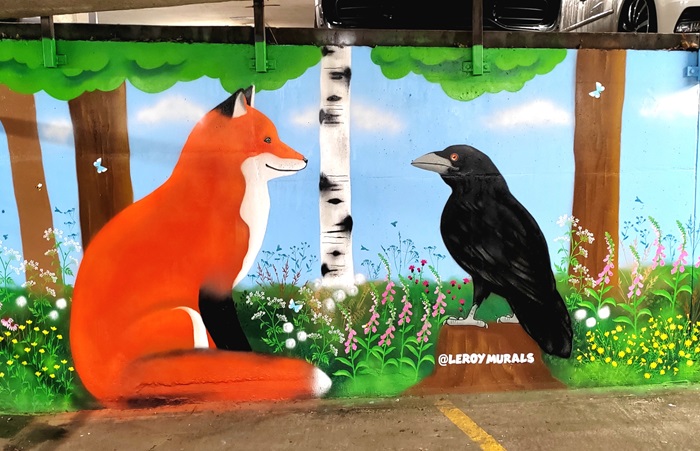 Mural artist, Leroy said: “"I'd noticed a wall in St Mary's Car Park that I thought would benefit from some colour and interest, so I contacted the council, offering to paint a mural there. The raven has been a symbol of Colchester for centuries, and I'd actually seen a young fox in my street a few days before I started painting, which gave me some inspiration. Additionally, there's the famous raven and fox poem, so it made sense to feature both of them in the mural. The wildflower meadow and insects bring life to the wall and allowed me to feel like summer was upon us for a few days.