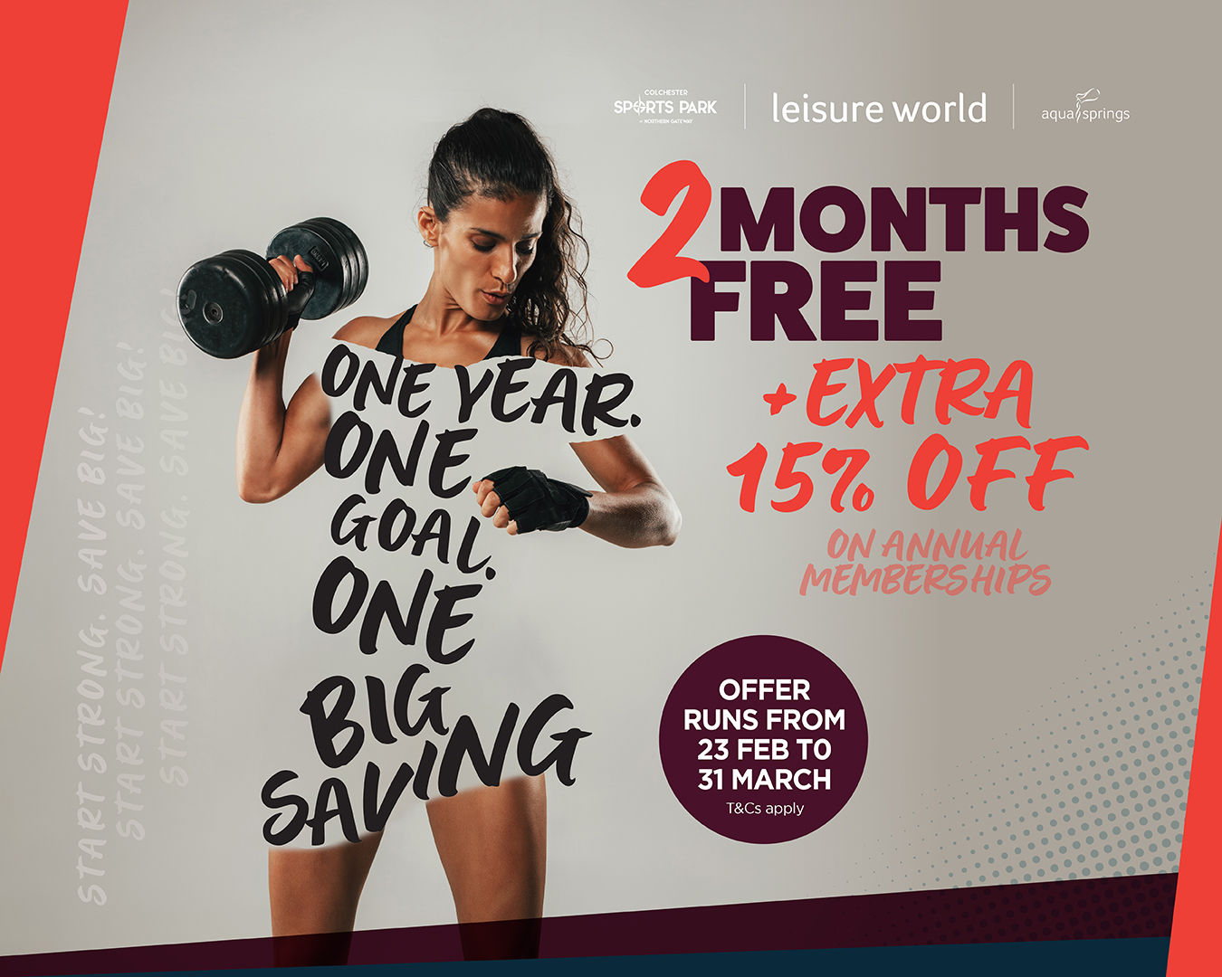 Leisure World and Colchester Sports Park are launching a major new promotion designed to help residents commit to their health, fitness, and overall wellbeing in 2026. Running from 23 February to 31 March, the ‘One Year. One Goal. One Big Saving.’ campaign offers two months free, plus an additional 15% off when you take out selected annual memberships.