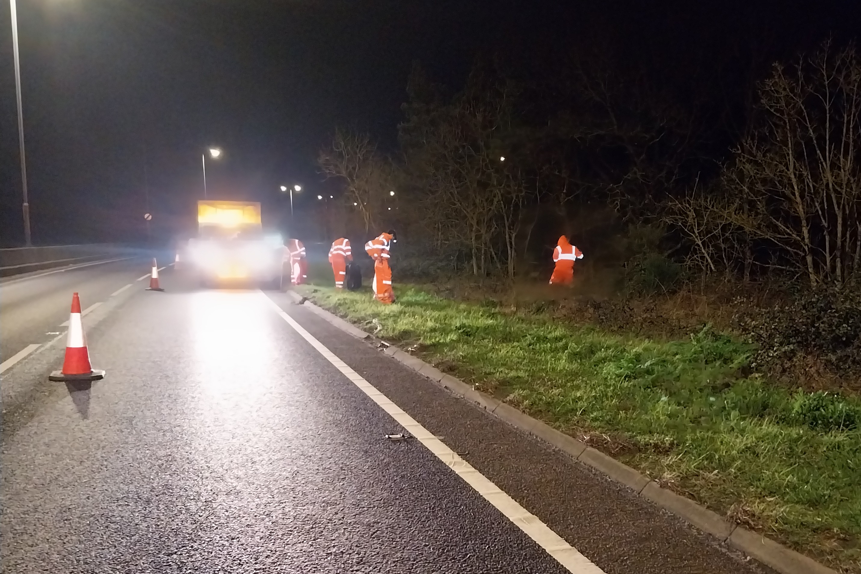 Over four nights in March, Colchester City Council carried out a large-scale overnight clean-up of the A12, with seven council officers working to remove litter and debris along a stretch of the busy road. The work covered the Ipswich-bound carriageway from junction 26 to junction 29 and the London-bound carriageway from junction 29 back to junction 26. We planned the clean-up overnight to reduce disruption to drivers and to ensure the safety of both road users and our teams.